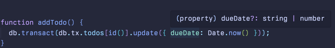 Instant will enforce that todos.dueDate are actually dates, and you'll get some nice intellisense to boot: